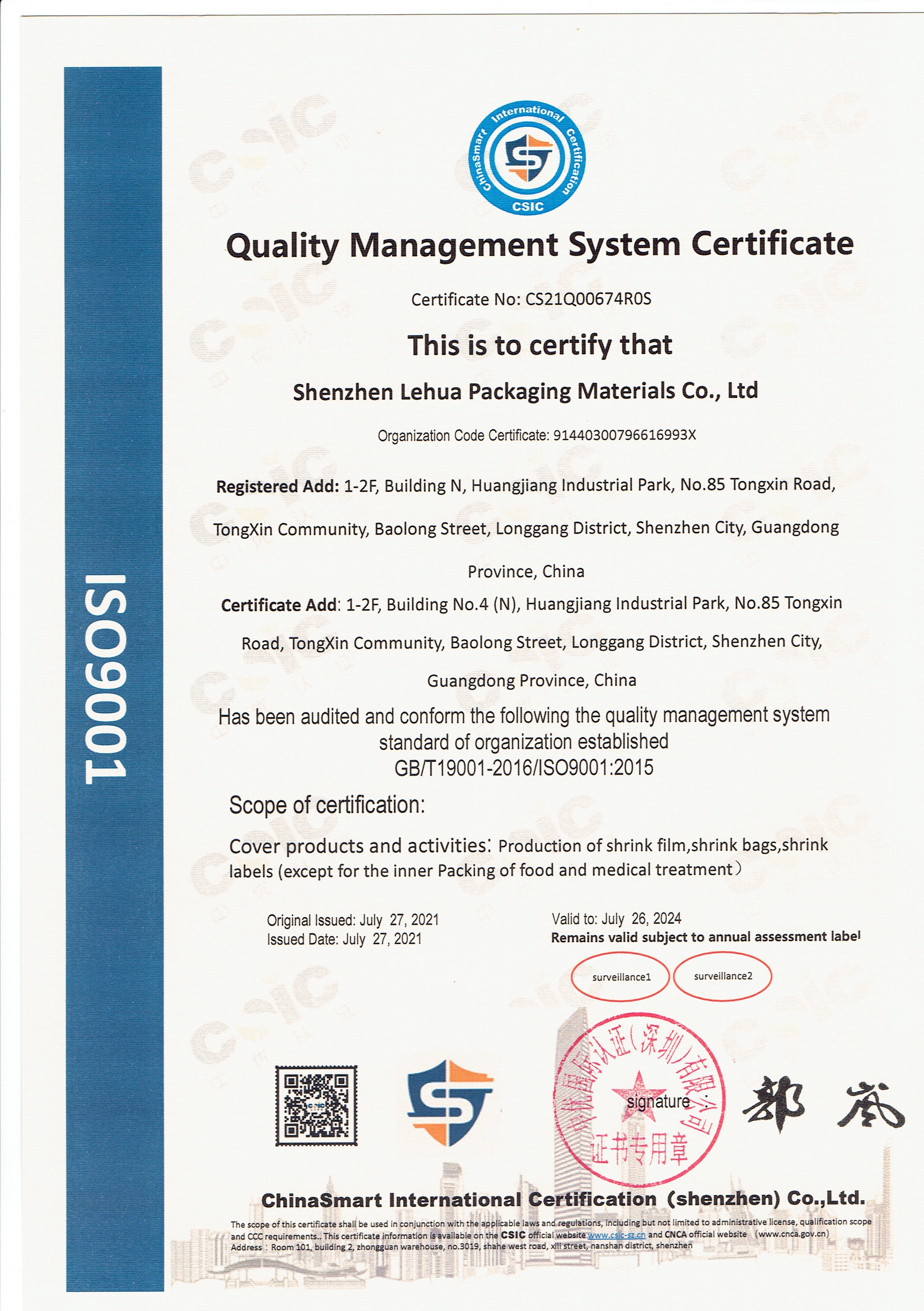 公司名稱:【深圳樂華包裝材料公司】